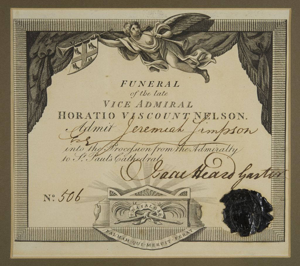 Jenks, T., ‘Contesting the Hero: The Funeral of Admiral Lord Nelson’, Journal of British Studies, 39.4, (2000), 422-453 (p. 438).